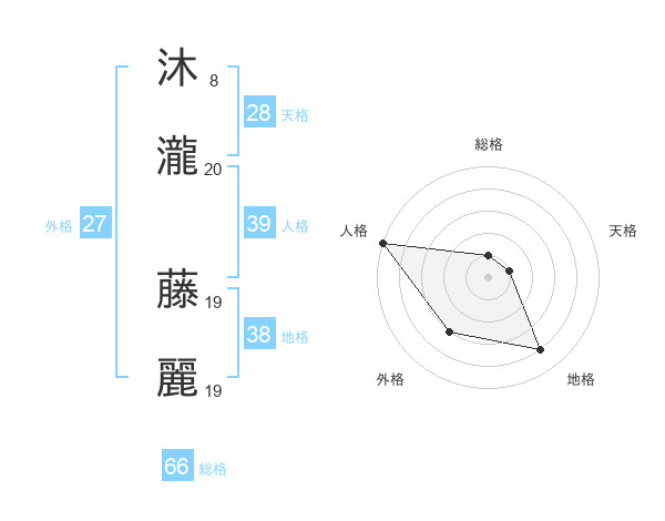 沐瀧 藤麗さんの総格は66画の1点!