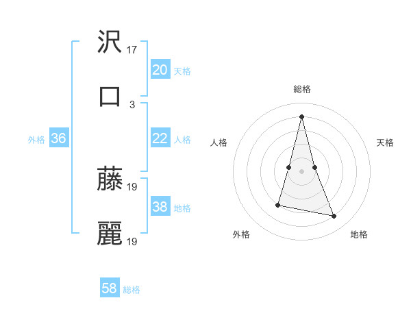 沢口 藤麗さんを姓名の画数から五運を鑑定