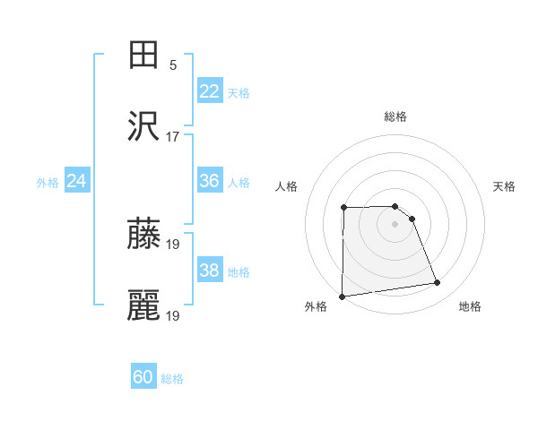 田沢 藤麗さんの総格は60画の1点!