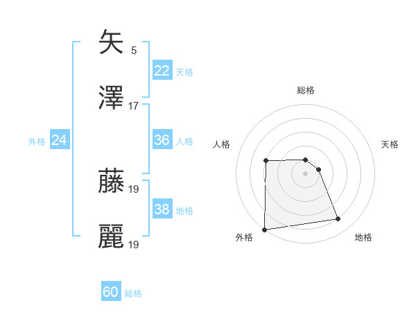 矢澤 藤麗さんの総格は60画の1点!