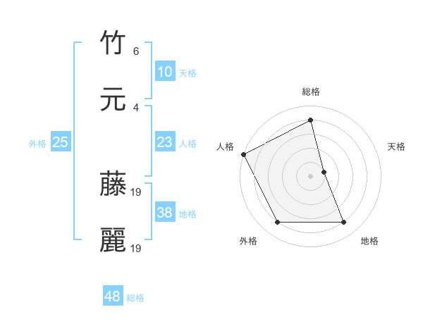 竹元 藤麗さんを姓名の画数から五運を鑑定