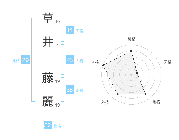 草井 藤麗さんを姓名の画数から五運を鑑定