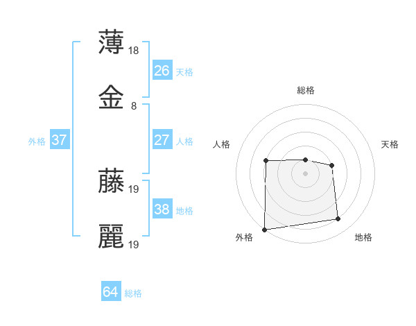 薄金 藤麗さんを姓名の画数から五運を鑑定