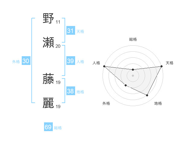 野瀬 藤麗さんの総格は69画の1点!