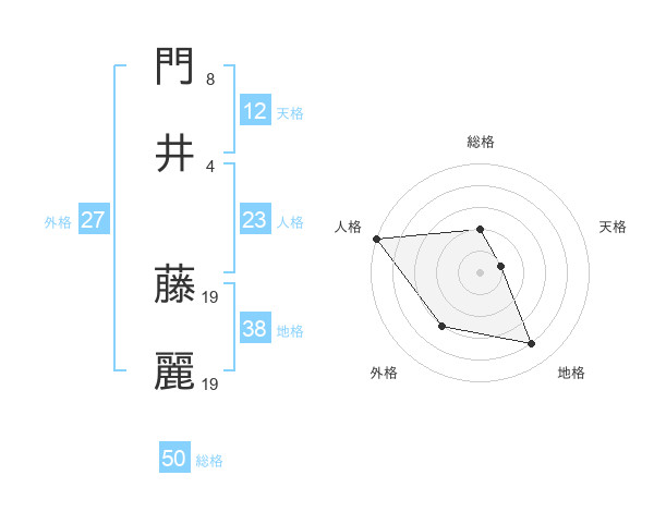 門井 藤麗さんの総格は50画の2点!