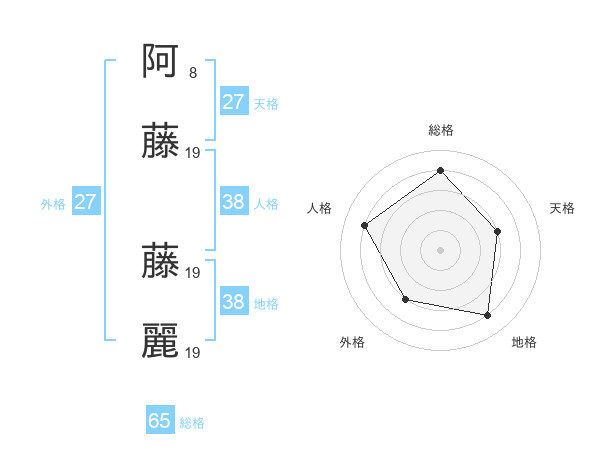 阿藤 藤麗さんを姓名の画数から五運を鑑定