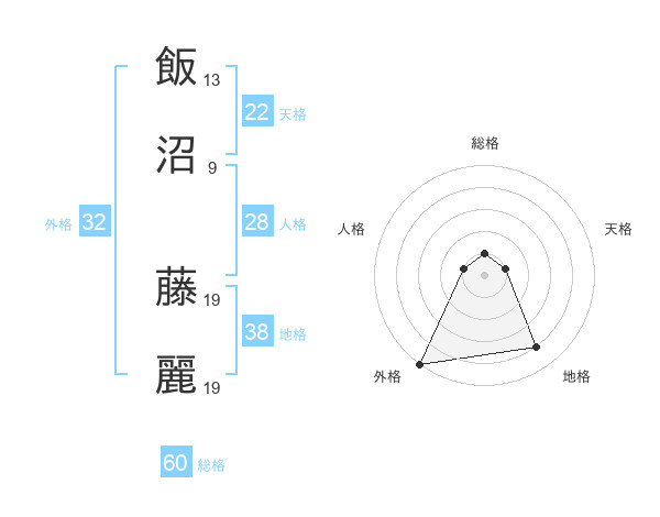 飯沼 藤麗さんの外格は32画の5点!