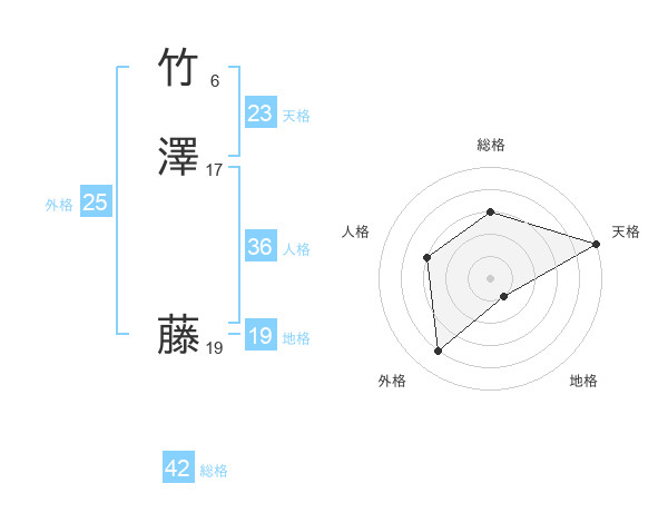 竹澤 藤さんを姓名の画数から五運を鑑定