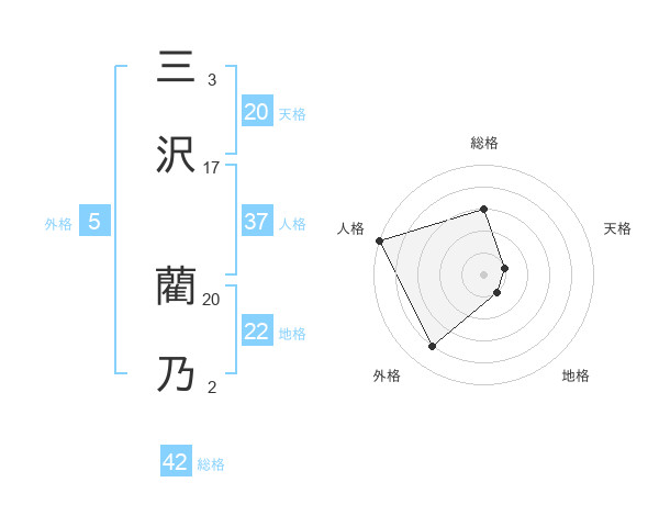 三沢 藺乃さんを姓名の画数から五運を鑑定