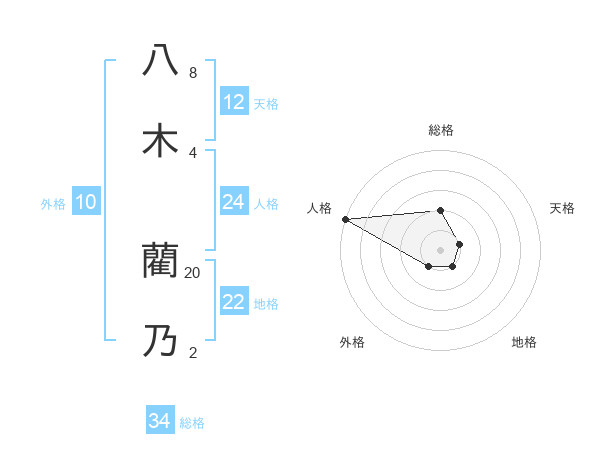 八木 藺乃さんの総格は34画の2点!