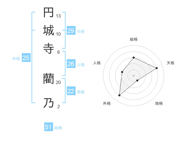 円城寺 藺乃さんの総格は51画の3点!