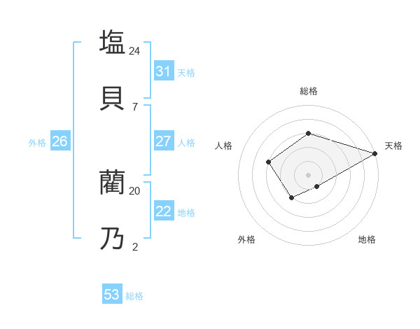 塩貝 藺乃さんを姓名の画数から五運を鑑定