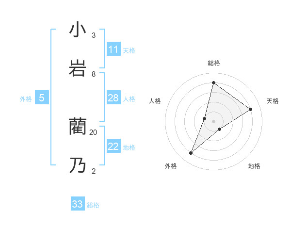 小岩 藺乃さんの総格は33画の4点!