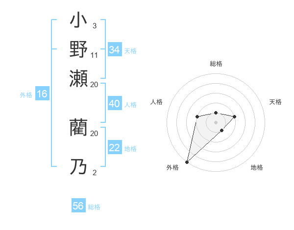 小野瀬 藺乃さんを姓名の画数から五運を鑑定