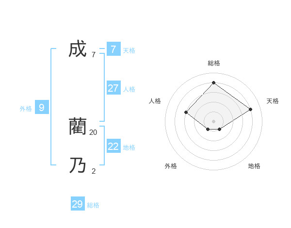 成 藺乃さんの総格は29画の4点!