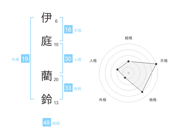 伊庭 藺鈴さんを姓名の画数から五運を鑑定