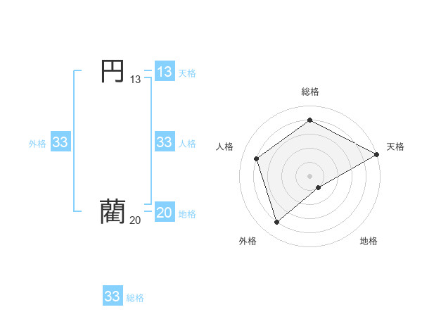 円 藺さんの外格は33画の4点!