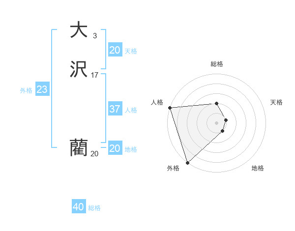 大沢 藺さんの地格は20画の1点!