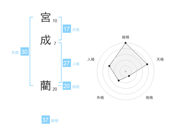 宮成 藺さんの総格は37画の5点!