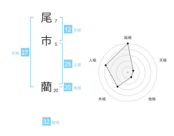尾市 藺さんの総格は32画の5点!