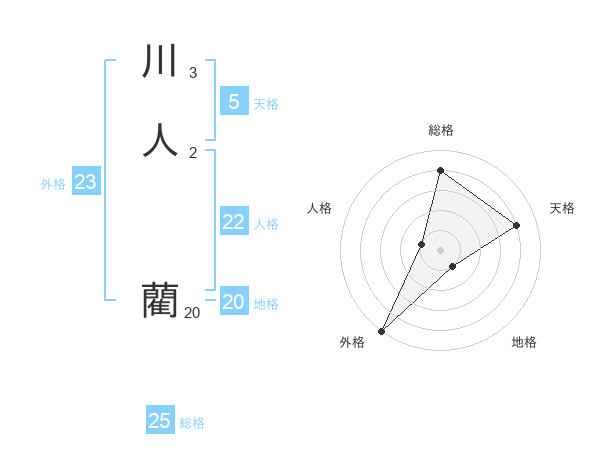 川人 藺さんの総格は25画の4点!