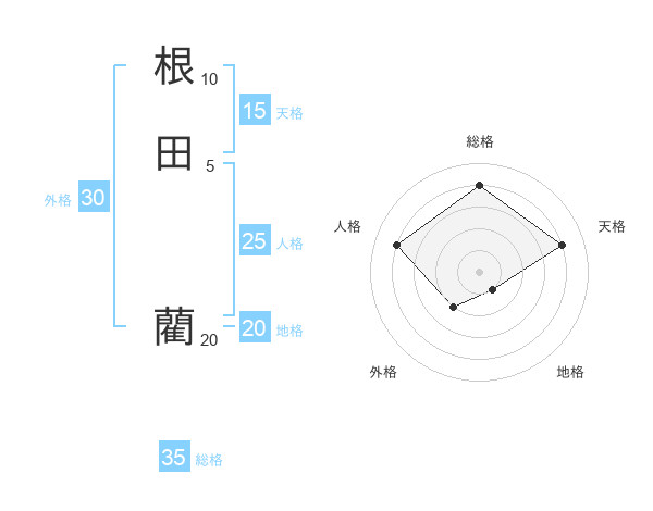 根田 藺さんの総格は35画の4点!