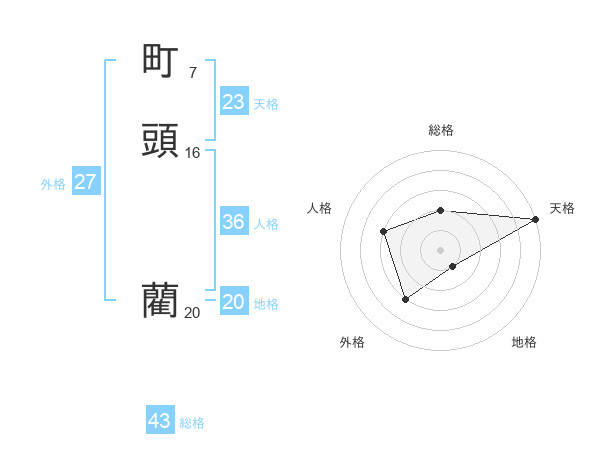 町頭 藺さんの総格は43画の2点!