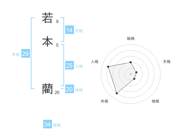 若本 藺さんの総格は34画の2点!