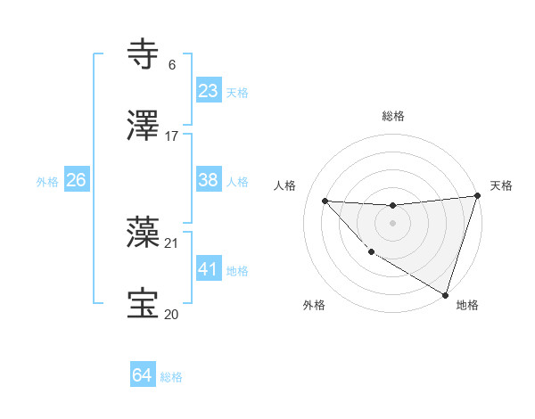 寺澤 藻宝さんの総格は64画の1点