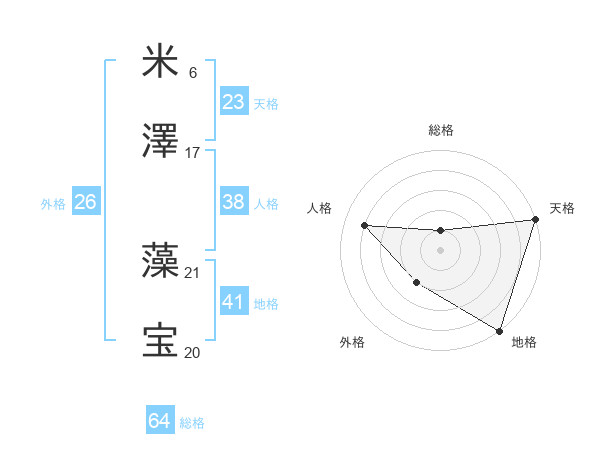 米澤 藻宝さんの総格は64画の1点!