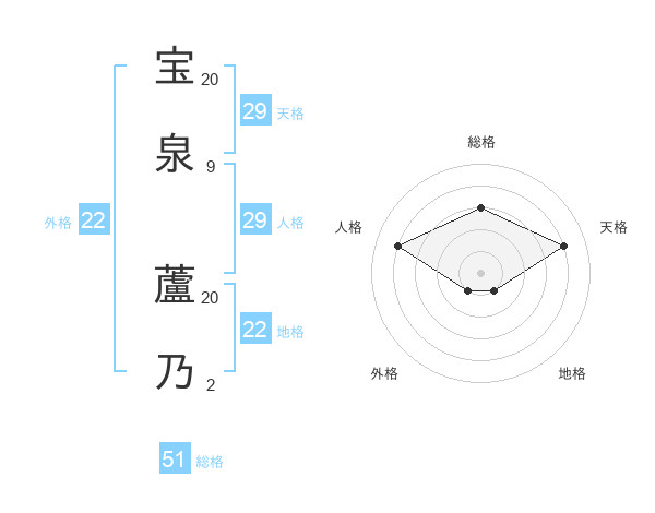 宝泉 蘆乃さんを姓名の画数から五運を鑑定