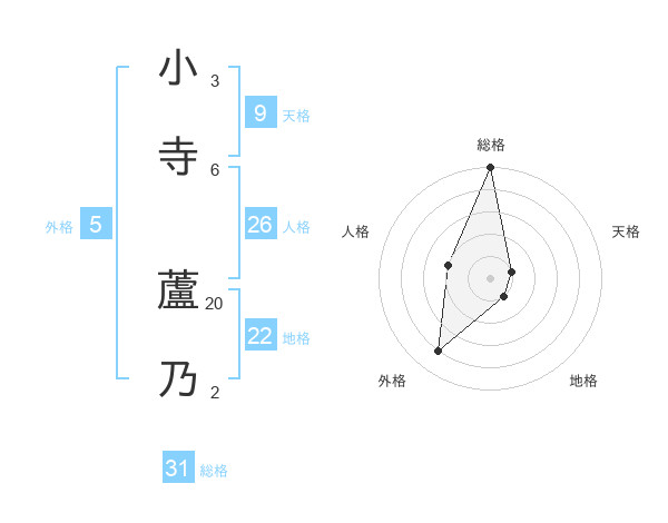 小寺 蘆乃さんの総格は31画の5点!