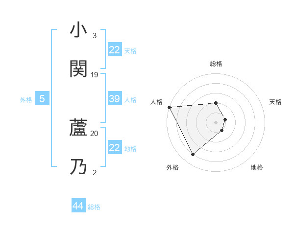 小関 蘆乃さんを姓名の画数から五運を鑑定