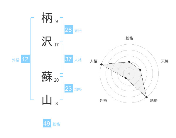 柄沢 蘇山さんの総格は49画の2点!