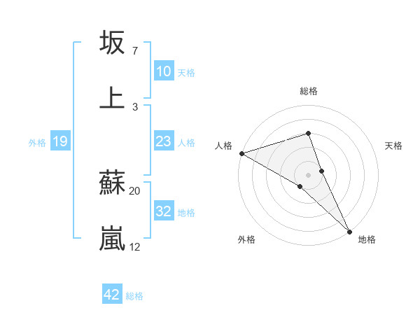 坂上 蘇嵐さんの総格は42画の3点!