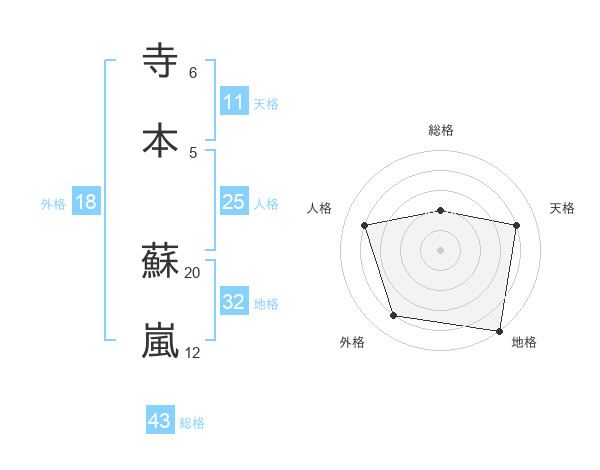 寺本 蘇嵐さんの総格は43画の2点!
