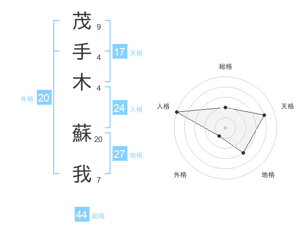 茂手木 蘇我さんの総格は44画の2点!