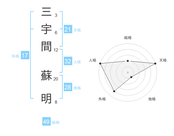 三宇間 蘇明さんの天格は21画の5点!
