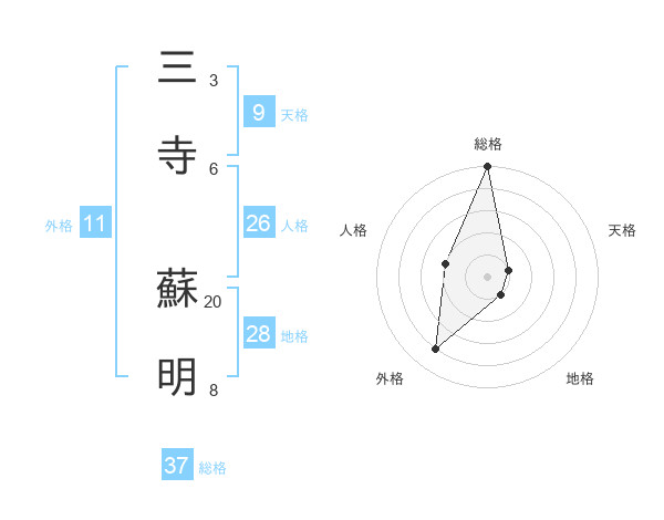 三寺 蘇明さんを姓名の画数から五運を鑑定
