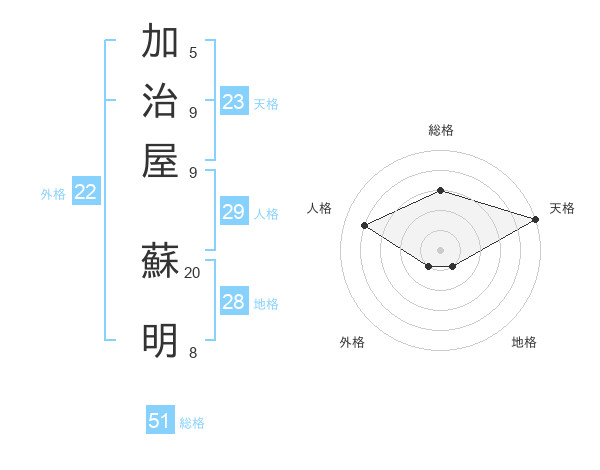 加治屋 蘇明さんを姓名の画数から五運を鑑定
