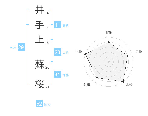 井手上 蘇桜さんを姓名の画数から五運を鑑定