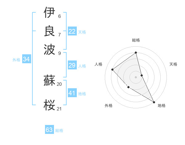 伊良波 蘇桜さんを姓名の画数から五運を鑑定