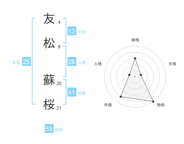 友松 蘇桜さんを姓名の画数から五運を鑑定