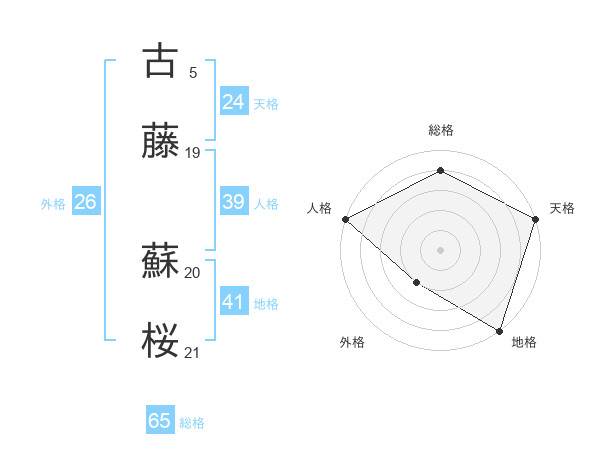 古藤 蘇桜さんの総格は65画の4点!