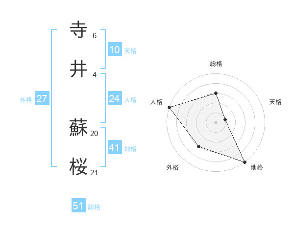 寺井 蘇桜さんを姓名の画数から五運を鑑定