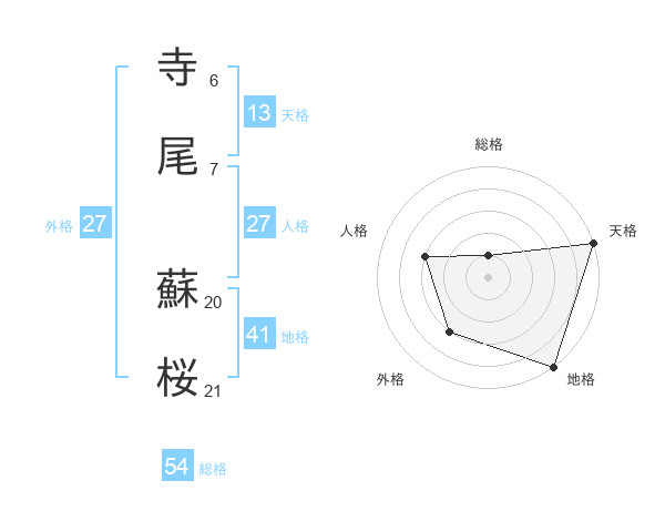 寺尾 蘇桜さんを姓名の画数から五運を鑑定