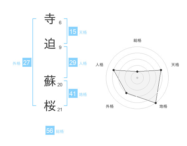 寺迫 蘇桜さんの天格は15画の4点!