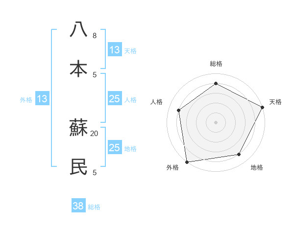 八本 蘇民さんを姓名の画数から五運を鑑定