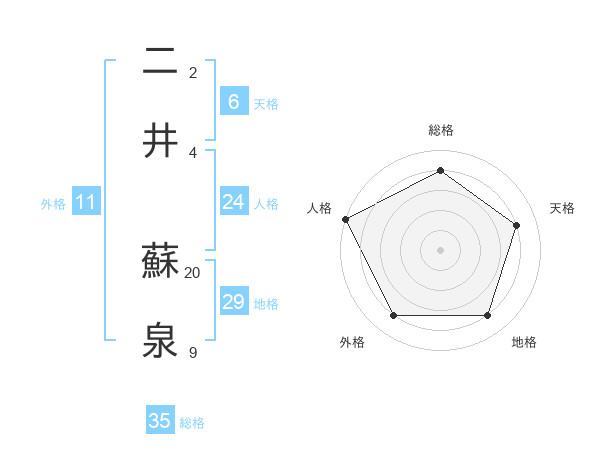 二井 蘇泉さんを姓名の画数から五運を鑑定