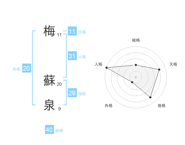 梅 蘇泉さんの天格は11画の4点!